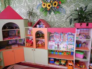 Тематичні куточки оформлено й наповнено матеріалами та іграшками так, щоб підказати дітям вид діяльності та способи дій, а у відповідних ігрових зонах - сюжет гри.