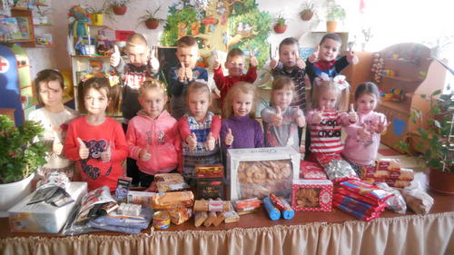 Діти разом з батьками долучилися до акції "Подарунки воїнам АТО", напередодні свята Миколая.