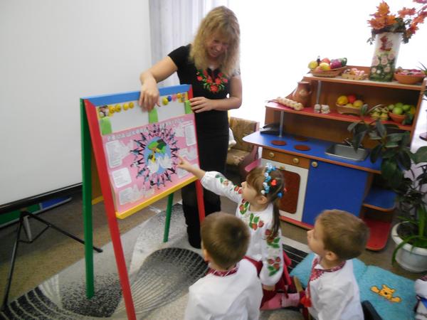З метою прищеплення дітям любові до рідного краю, поваги до національної культури, національних звичаїв, під час занять активно використовується народознавий матеріал (вінки, рушники, український одяг, гончарні вироби, свищики, тощо). Заняття з елементами народознавства сприяють вихованнюу дітей духовності на національному грунті , доброзичливості, чесності, взаємоповаги, поваги до культури інших народів, вшанування їх традицій, оберегів.