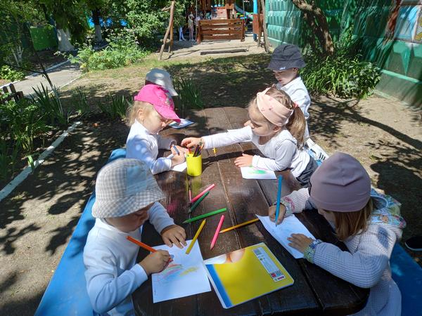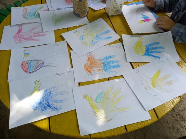 Напередодні Дня Конституції діти середніх груп звернулися з гаслом: "Нам потрібне мирне небо" та намалювали голубів - символи миру та свободи.
