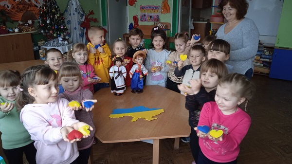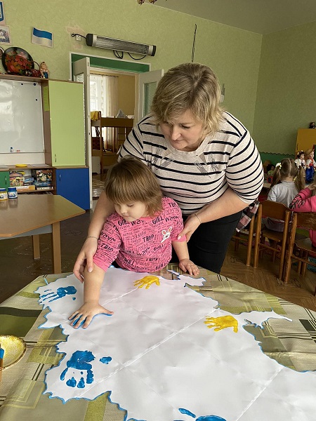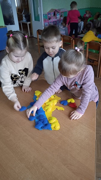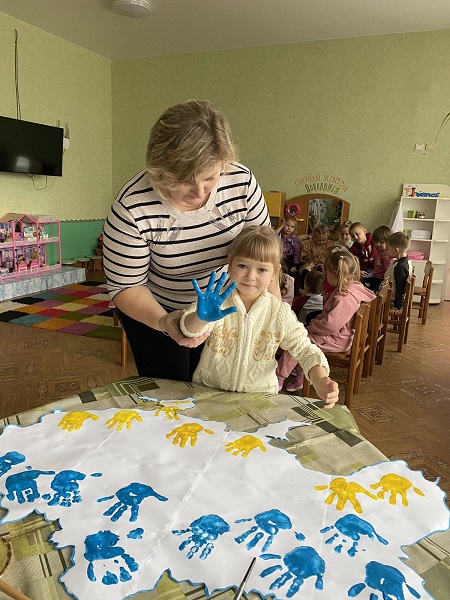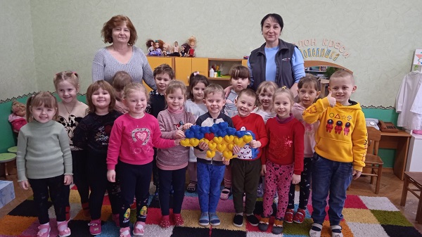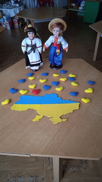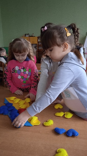 Вихователі середньої групи Корзун Н.В. та Олесенко Л.І. створили з малятами мапу України із жовто-блакитних сердечок.