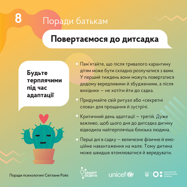 Практичний психолог Щербак Анюта Віталіївна долучилася до проєкту "Психолого-педагогічна підтримка батьків в умовах надзвичайної ситуації" за сприяння дитячого фонду Юнісеф та благодійного фонду "Крок за кроком".