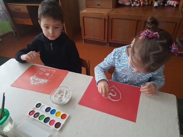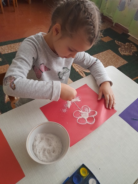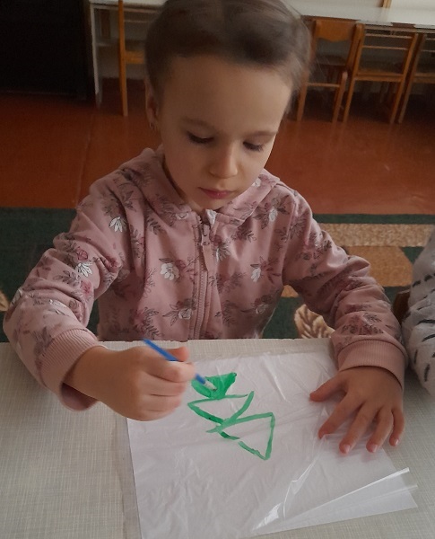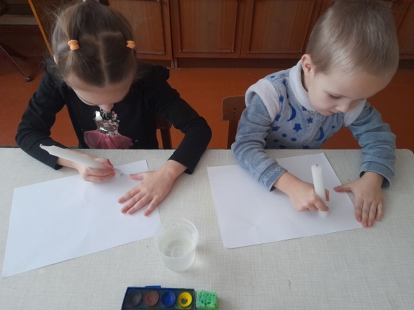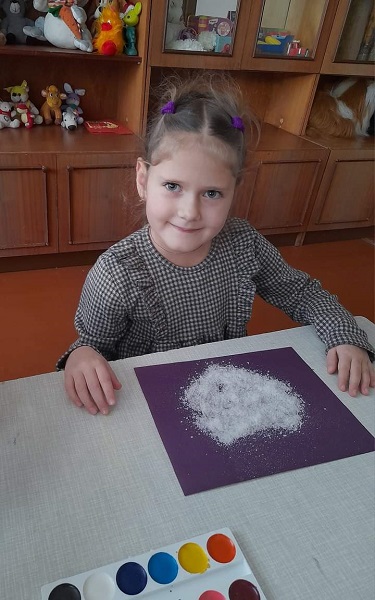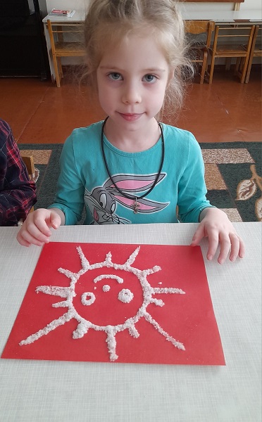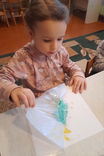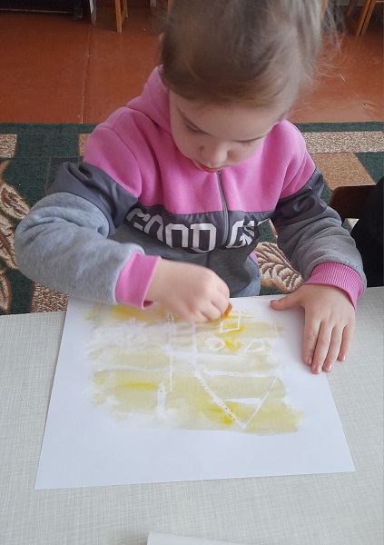 З дітьми старших груп "Веселка", "Ромашка" та "Колосок" практичним психологом Щербак Анютою Віталіївною були проведені цікаві заняття: малята з групи "Веселка" малювали на звичайному полиетиленовому пакеті (нетрадиційна техніка малювання); з групи "Ромашка" - діти маювали сіллю, та розмальовували різними кольорами свій настрій; малята з групи "Колосок" - викоистовували техніку "малюнок свічкою".