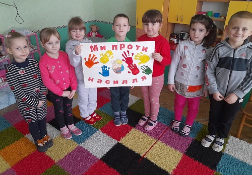 Вихователі середніх груп "Оленка", "Буратіно" та старших груп "Золота рибка", "Полуничка", "Казка" також приєдналися до Всеукраїнської акції "16 днів проти насильства" та провели цікаві бесіди, ігри, колективні роботи з дітьми на тему:"Ми в дитячому садочку як одна сім'я".
